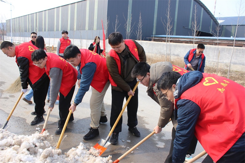 下午,10余名志愿者身着统一服装,手持铁锹、扫帚等工具,对工业区园区内的垃圾和积雪进行集中清扫,以实际行动保障道路整洁、畅通,为过往司乘人员及周边群众安全出行保驾护航。