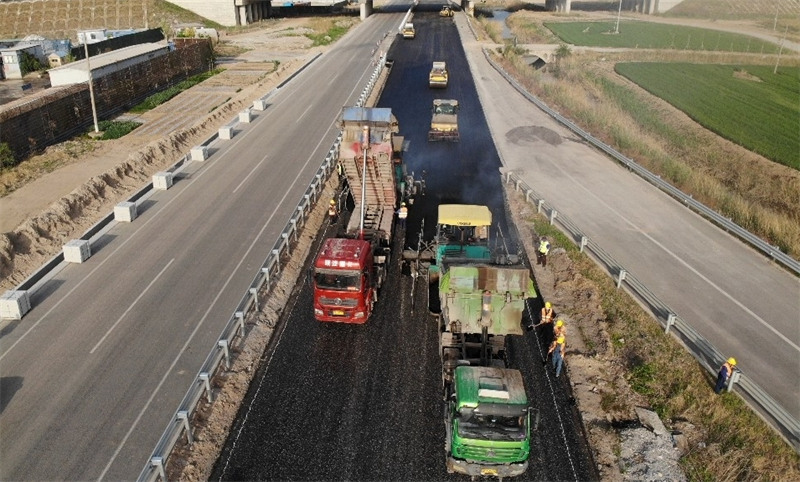 庆章高速二标段施工现场,压路机、摊铺机等大型机械设备正在紧张有序作业,全体参建者放弃休假,坚守岗位,聚焦关键节点、关键环节,重点推进G220国道与大年陈枢纽互通立交建设进度。截至目前,路基土方工程完成92%,梁板吊装完成87%,桥面系、路基防排水和路面水稳基层全面展开。