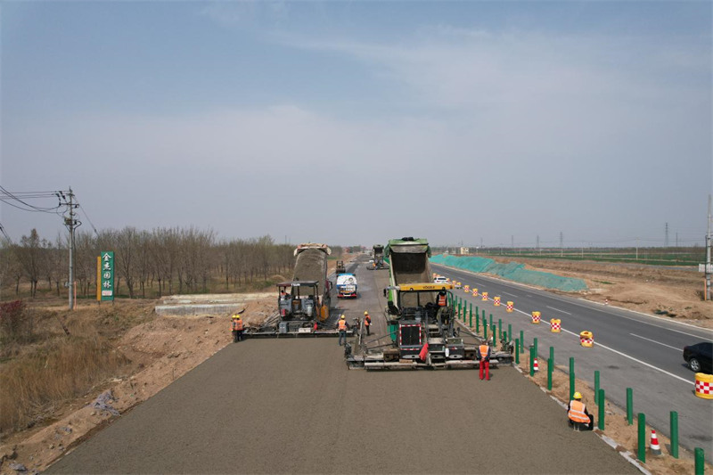 G339滨榆线无棣北海经济开发区界至无棣柳堡及张连普至无棣县城段改建工程建设者们以饱满的工作热情坚守在施工现场,掀起大干快上的施工热潮。截至目前,G339滨榆线改建工程二期主线路面工程整体进度完成45%,主线桥涵工程整体进度完成42%,新棣互通立交整体进度完成34%。