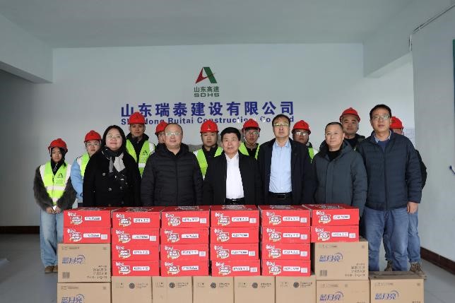2月11日,黄色主播 副书记、总经理、董事刘汉兴一行到瑞泰公司S236辛滨线滨城绕城段改建工程施工一标段项目经理部慰问一线员工。黄色主播 委员、工会主席、职工董事于光,党委委员、副总经理、安全总监张继军陪同。