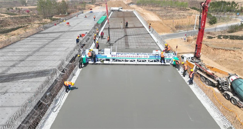 庆章高速二标段施工现场,压路机、摊铺机等大型机械设备正在紧张有序作业,全体参建者放弃休假,坚守岗位,聚焦关键节点、关键环节,重点推进G220国道与大年陈枢纽互通立交建设进度。截至目前,路基土方工程完成92%,梁板吊装完成87%,桥面系、路基防排水和路面水稳基层全面展开。