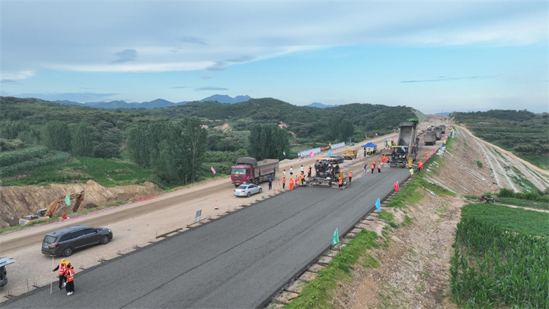 建设者们顶烈日战酷暑坚守一线,从方案打磨、原料把控到机械精准操作,各个环节力求精益求精,确保本次摊铺衔接有序,高效优质。